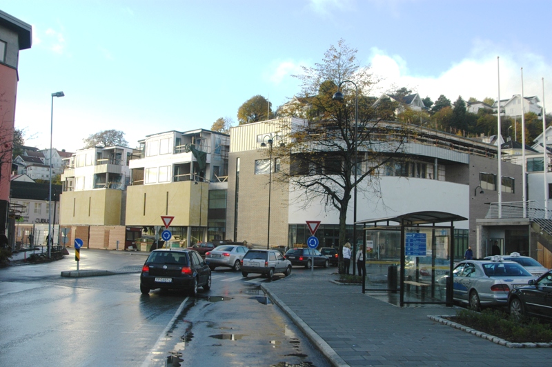 byens torg, parkeringshus Vest (i fjell) er under planlegging, og bussoppstillingen på
