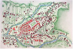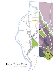 ROMANIA May 2007 From the 6th to the 12th of August 2007 the European School of Urbanism and Architecture (ESUA) held a town planning workshop in Bran in Romania, developing the first SmartCode for a European community. The test course had 13 international ESUA partner representatives and 18 Romanian and Norwegain students participating. The test course was finalised with a study trip of Transilvania to relate the project to restoration crafts training and cultural heritage. On multiple levels the workshop has been a great success: 1. The ESUA project has advanced a great deal in the production of it’s curriculum, with a sketch setup produced for the curriculum handbook. 2. The test course was overall rated as a success by it’s students and professional participants, with students feeling an impact by their course on both their future career and their current university education. 3. The test course achieved it’s promise to the local community of Bran by producing a proposal for a new town plan and coding regulations in the form of a new SmartCode adapted to Bran. By achieving all it’s three main goals, the Bran test course shows that it is possible to combine education (of the students), research (development of the curriculum) and practical field work (town plan and SmartCode) into one event for the mutual benefit of all involved. The test course has given valuable feedback for developing new courses in sustainable, context-based urban design not currently taught in Europe. ![]() Proposed masterplan for the centre of Bran. Proposed new buildings are highlighted red, existing buildings are shown in brown. The extension of the town is defined by a proposed new civic square and a proposed new throughfare. Image: ESUA