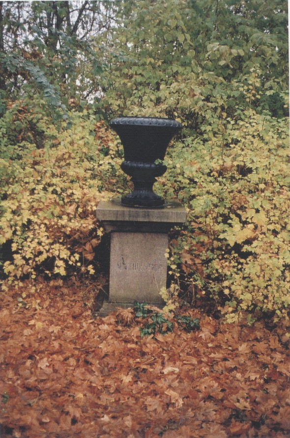 Magnus A. Thulstrup Står ikke på gul liste, men er antageligvis registrert på annen måte. Den opprinnelige urne er fra 1870-årene. (Arno Berg) "Husene har siden blitt revet og det er satt opp en minneurne med Thulstrups navn på sokkelen ved den gamle boligtomten. Opprinnelig var dette en Høganes-urne, men den ble ertsattet med en støpejernurne en gang på 1900-tallet." (Hilmersen/Øverbø)