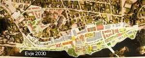 Her er Evje sentrum, utkast til regulering fra april 2009