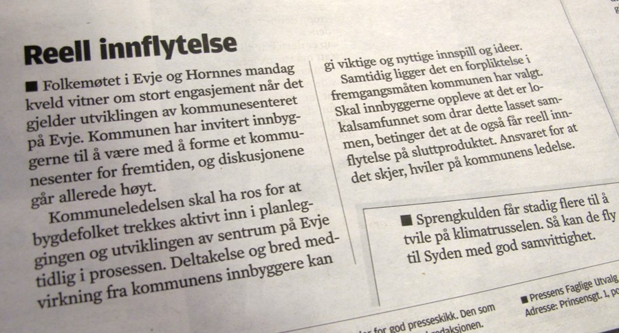 Har du gode ideer til hvordan Evje sentrum bør utformes?