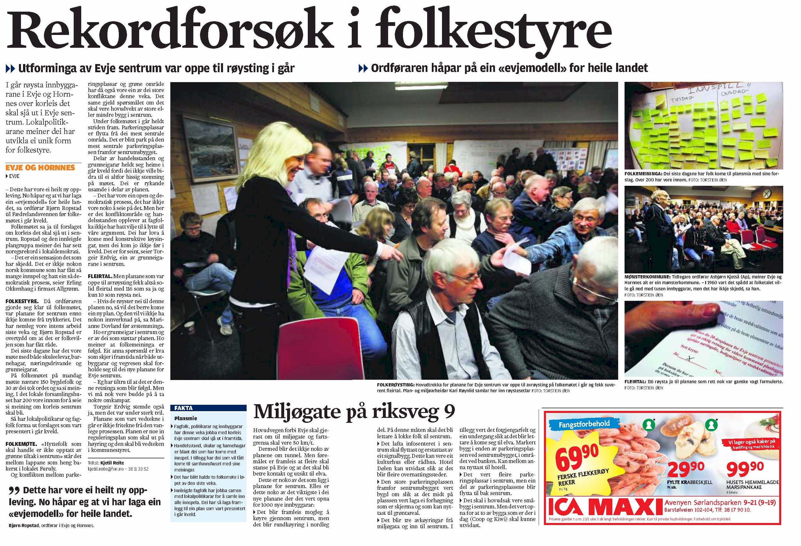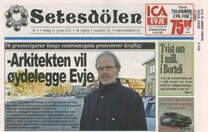 Oppslag i Setesdølen 15.01 i forkant av plansmia