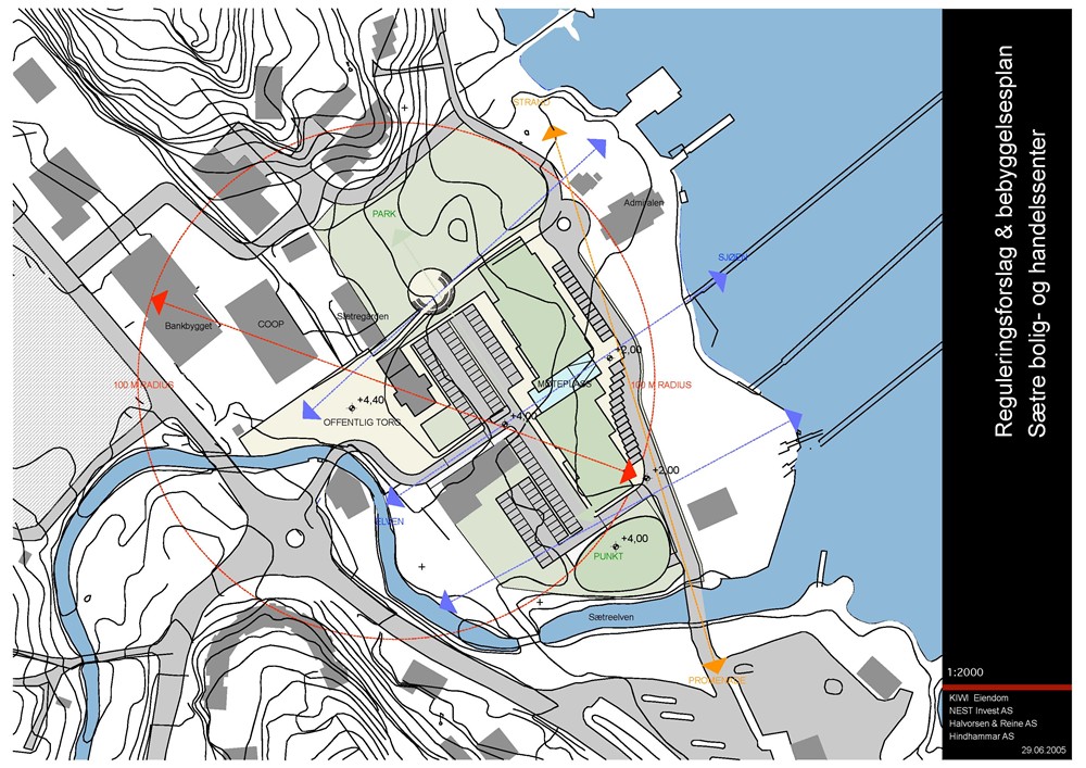 (H&R) at Men av dette trekker de en underlig konklusjon: For de fleste andre vil det synes viktigere å forsøke å skape en logikk og sammenheng, prøve å binde sammen de enkeltstående byggene, utvikle gode byrom og plasser og søke å utvikle de tilfeldige bygningsvolumene som allerede eksisterer. Konklusjonen til H&R er at tilfeldigheten og kaoset skal videreføres, og denne argumentasjonen skal legitimere at en drysser ut flere tilfeldige bygningskolosser i Sætre-landskapet. Sætre sentrum sliter allerede med uheldige og tankeløse bygningsstrukturer, og er i ferd med å bli ytterligere ødelagt av vettløs utbygging. Dersom det foreliggende forslag til reguleringsplan blir vedtatt, vil sentrum bli båndlagt av store bygningsvolumer som ødelegger enhver form for byromdannelse, og det meste av sjøsiden blir fratatt allmennheten.