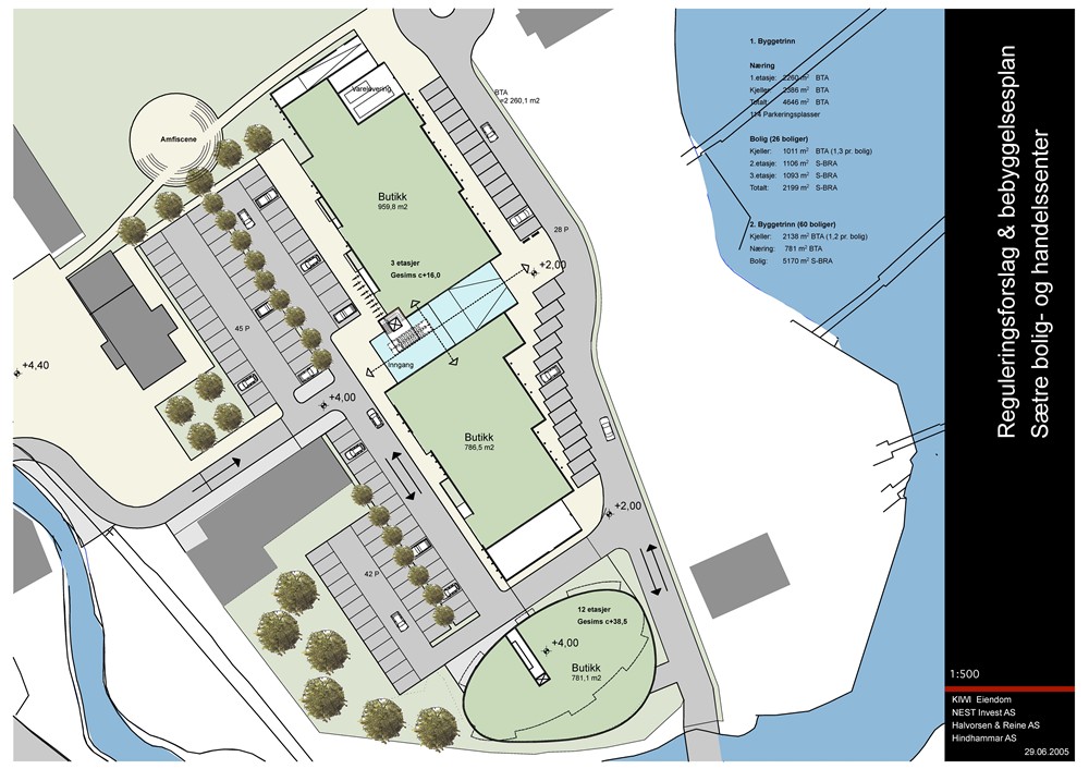 Våre innsigelser kan kort oppsummeres slik: · De foreslåtte bygningene har en størrelse og utforming som er fundamentalt feil på et lite sted som Sætre. De vil blokkere kontakten mellom sentrum og sjøen både visuelt og fysisk, skyggelegge sentrum store deler av dagen og skape uheldige byrom som blir dominert av trafikk, parkering og asfalt. Forslaget bryter med alle ønsker og prinsipper som er nedfelt for utforming av Sætre sentrum.