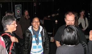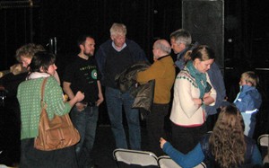 ![]() Anne Margrethes samarbeidspartnere Knut A. Hanstad og Erling Okkenhaug i samtale med filmskaperen Pål Winsents. ( i midten) ![]() ![]() Det ble mange samtaler etter visningen