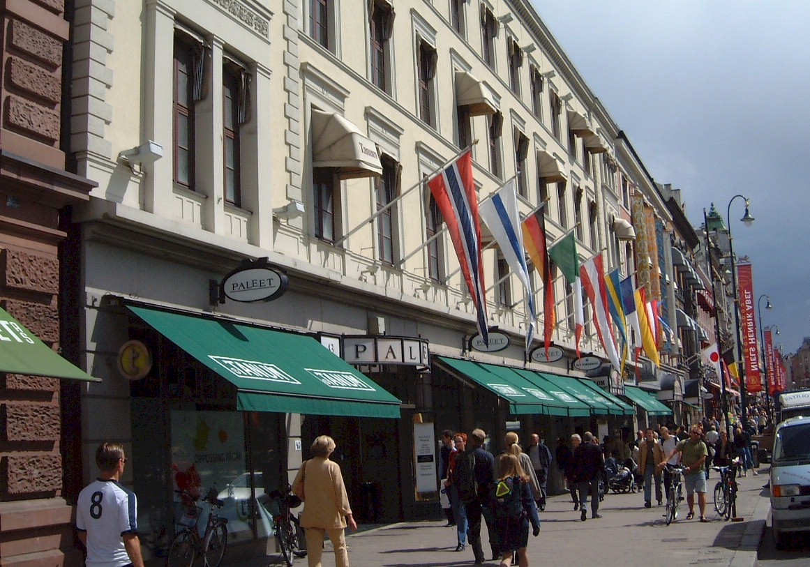 fasade av bygårder det veldrevne kjøpesenteret Paleet.