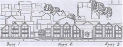mellom husene dimensjoneres som smågatene for øvrig i strøket, kun egnet